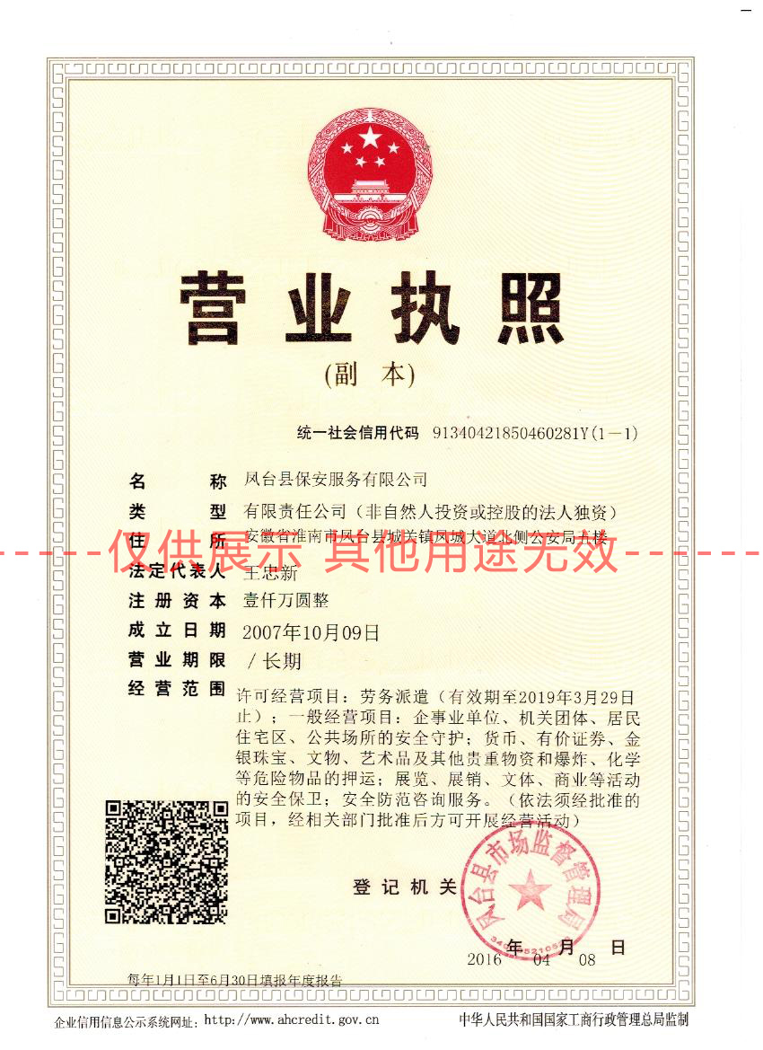 鳳臺保安服務有限公司成立于2007年,是經鳳臺縣公安局行政許可的經營企業(yè),注冊資金1000萬元,具有國企背景(安徽州來控股有限公司),更是一家朝氣蓬勃的年輕企業(yè)。公司主營勞務派遣、保安服務、武裝押運等。 >>了解更多